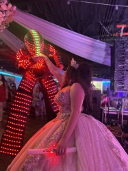 -Limbo show (with LED glow bar): It is more than just having your robot dancing with you and your guests, it is also about keeping them engaged, having fun, and enjoying an exiting night!!! Limbo bar show will have your guests going on a train all around the dance floor for their limbo dance!
